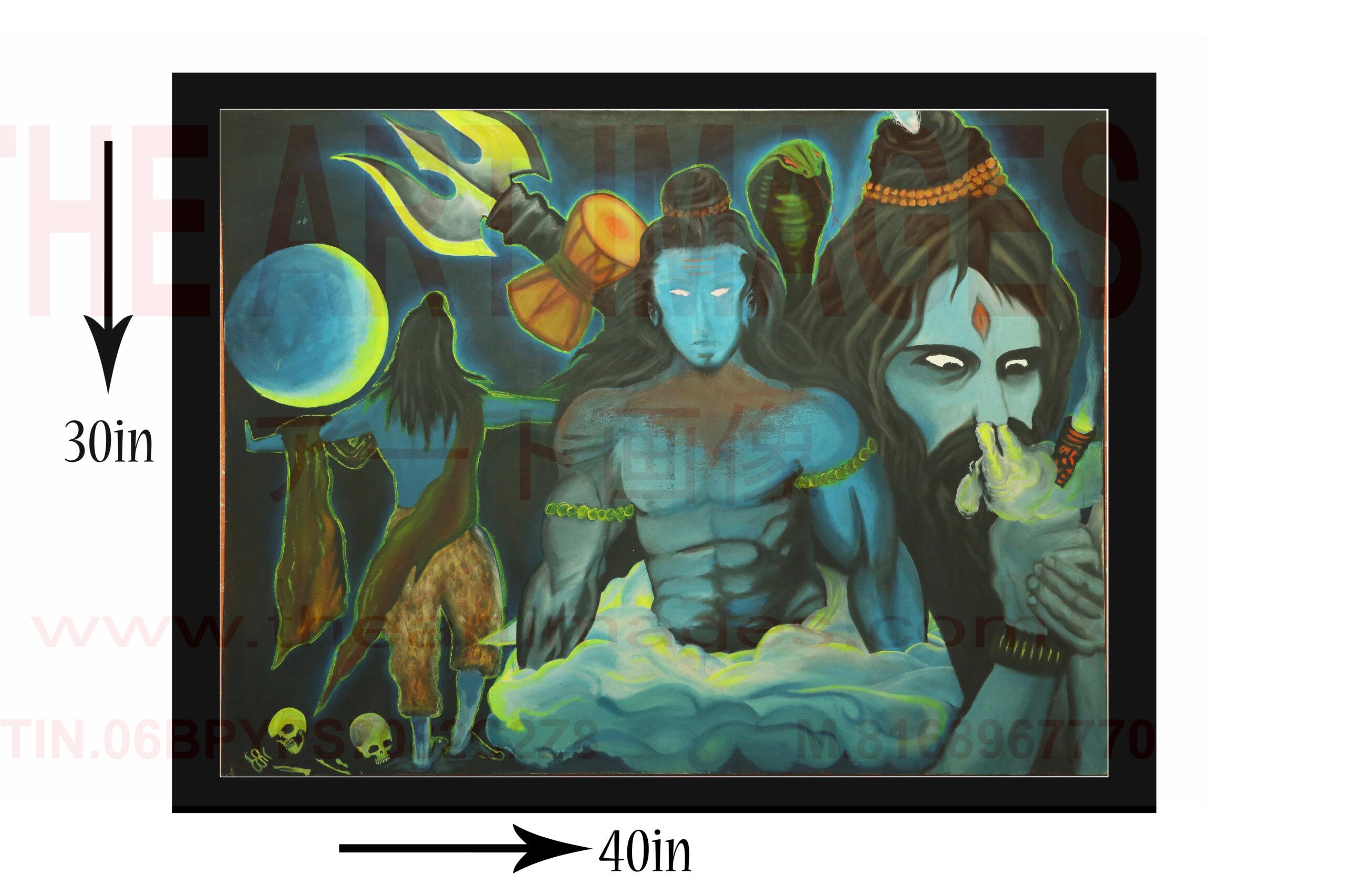 Elevate your spiritual space with this stunning oil painting of Lord Shiva, the revered Hindu deity. The dark blue tones evoke a sense of mysticism and tranquility.